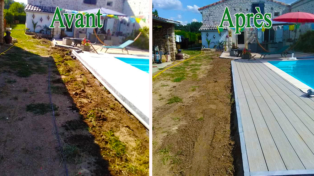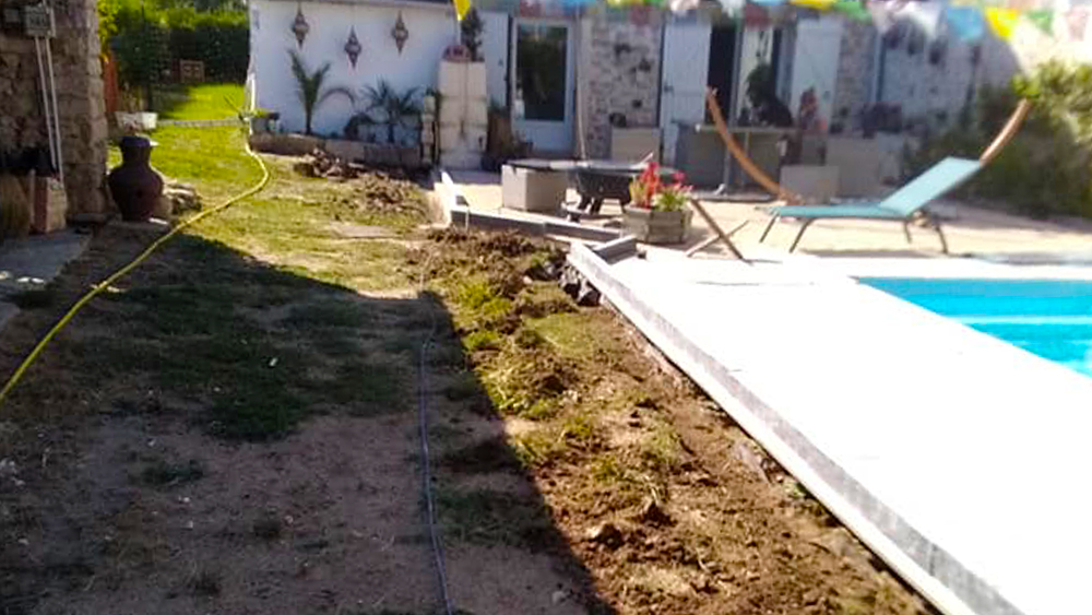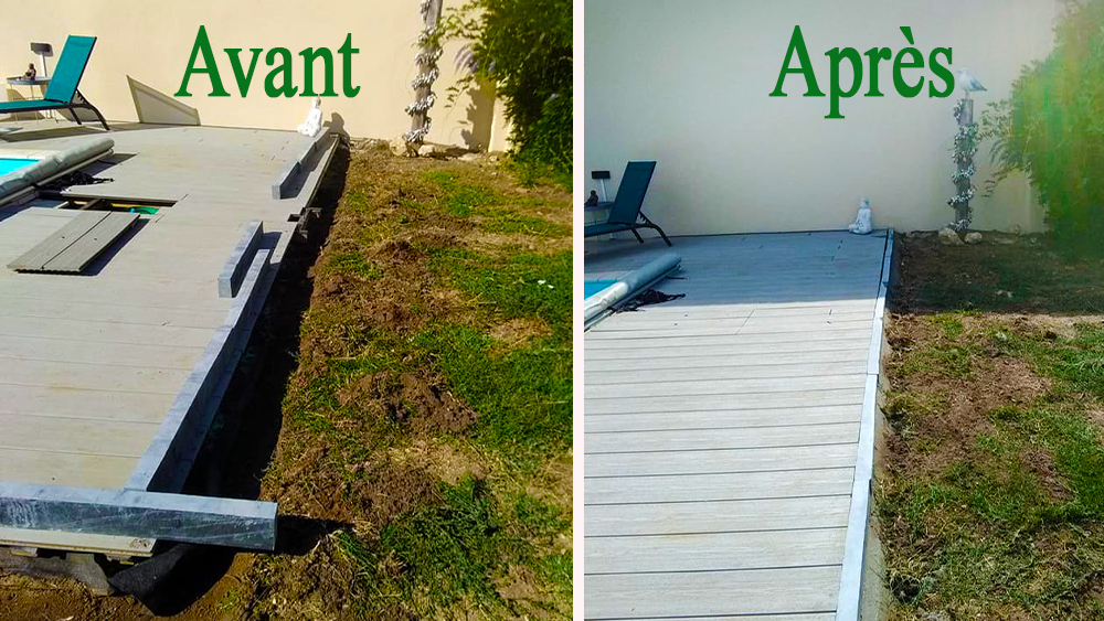 Avant-après pose bordure ardoise pour délimitation du future gazon